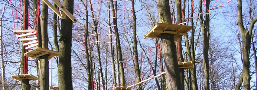 Za tímto účelem byla použita originální technologie upevnění talanů (dřevěných plošin) i zavěšení ocelových lan ke stromům. . V celém areálu nebyl použit žádný hřebík či vrut do těla stromu. Vlastní konstrukce drží na stromech třecí silou nebo stiskem, čímž je minimalizován zásah do stromů.