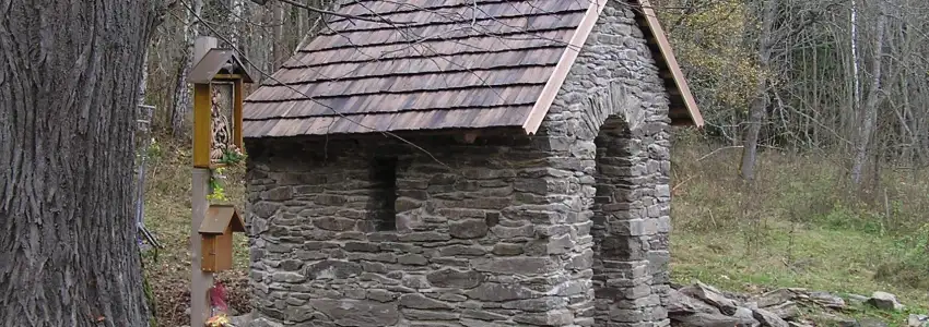 Opravy probíhaly v rámci dobrovolnické práce na obnově této drobné historické památky ukryté v klínu šumavských hvozdů. Již nalezení samotné lokality, doprava materiálu na místo a samotná práce se tak trochu vymykala normálu. V rámci osvěty a výchovy příštích generací šindelářů jsme k práci přizvali i své děti. Na připravenou konstrukci krovu, jež byla posazena na obnovené režné kamenné zdivo, bylo provedeno laťování s patřičným přesahem. Krov je sice rozsahem velmi malý, ale bytelně stavěný. Přeci jen jsme uprostřed Šumavy. Při pokládání vlastního šindele byl okapový okraj střechy zesílen pomocí podmetků. V rovných plochách nebyl žádný problém, ale v zadní okrouhlé části střechy bylo nutno dotvořit na míru velmi zkosené konusy, abychom se vešli na dané zakřivení střechy. Pohledový čelní okraj střechy byl prostě zakryt vždy třemi šindeli. Nakonec byl na vrchol hřebene připevněn tvarovaný kolmý šindel. Vše se stihlo během jediného, ale dlouhého pracovního dne. Zpět do "civilizace" jsme odjížděli s nadějí, že tato památka potěší poutníky, kteří do tohoto krásného koutu Šumavy zavítají.