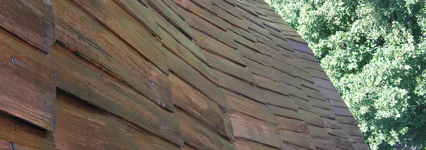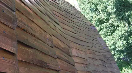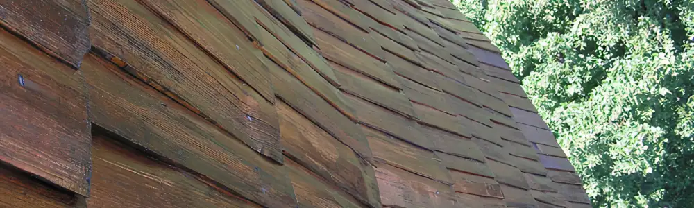 Obě kuželovité střechy o rozloze 160 m² a 120 m² jsou velmi strmé a výrazně vyčnívají nad okolní střechy a stromy. Po přelaťování byl na nové krytí použit ručně štípaný smrkový šindel na pero a drážku. Pro dosažení požadované barevnosti a dostatečné impregnace těchto obtížně přístupných střešních ploch jsme použili speciálně namíchaný tón přípravku Karbolineum extra. Největší výzvou byla doprava materiálu do výšky 25 až 35 metrů, kde bylo možné využít jen úzká vnitřní schodiště v tubusu věže a klasický kladkový vrátek.