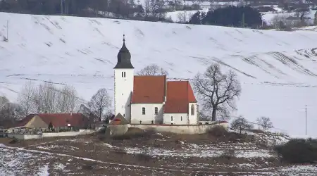 Příkladem jednoho z druhu výškových prací je oprava a nátěr fasády věže kostela na Zdouni nedaleko Hrádku u Sušice.